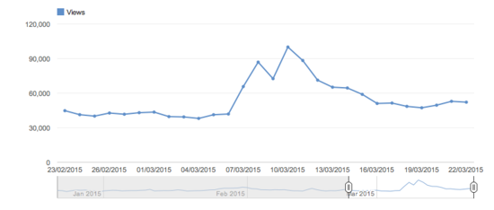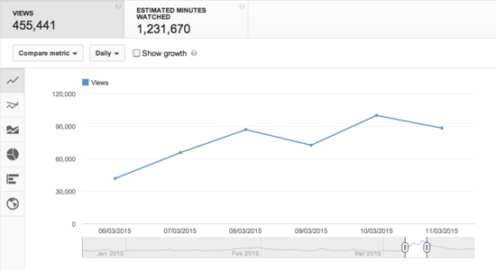 Nearly half a million video views were registered for the above period. The peak came on Tuesday 10 March, the day when the last batch of videos (Latin quarterfinal) was uploaded, with 110,000 views.