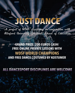 Stanford University’s Graduate School of Education will sponsor a cash prize of 100 Euros or 1 free online private lesson with WDSF World Champions. Kostumer will sponsor custom-made practice wear for the winners of any WDSF DanceSport discipline.
